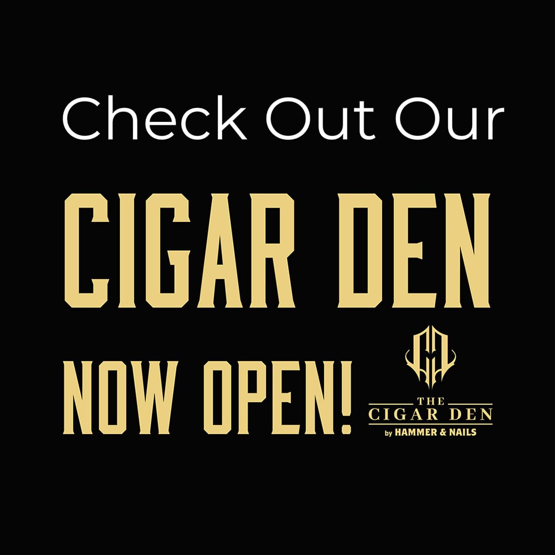 The Cigar Den by Hammer & Nails is a premier cigar shop for the country's cigars that delivers an experience unlike any other. Hammer & Nails is your ultimate total men's grooming destination now with a cigar in hand from the Cigar Den.